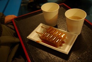 暖かいテントの中で頂きました。