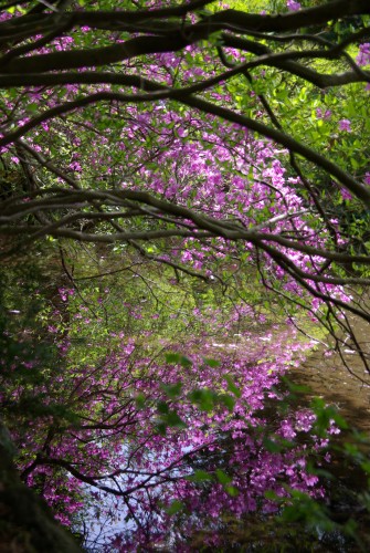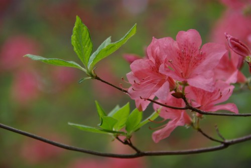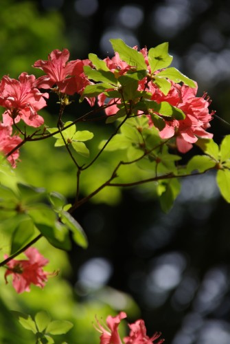 ツツジが光に照らされて