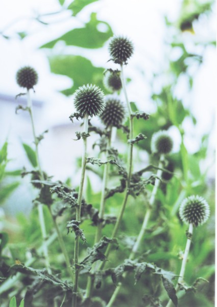 はじめて育てる・見る・触る、ルリタマアザミ。 去年の種まきで開花です。