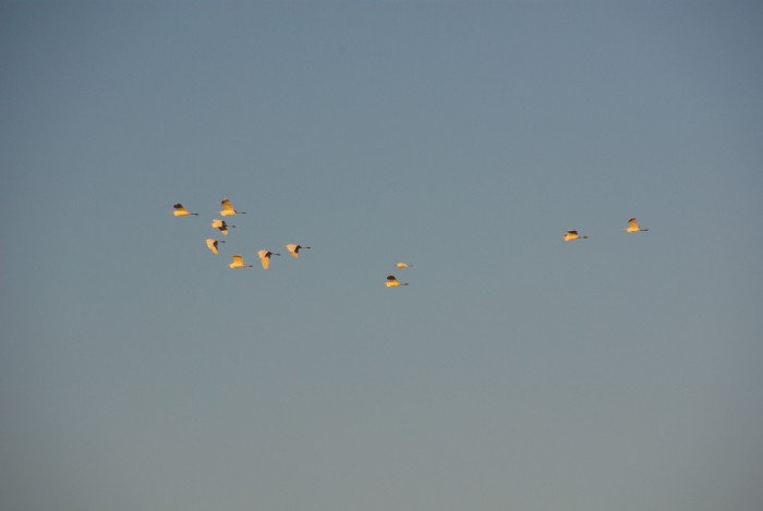 鳥も朝日色に染まっています