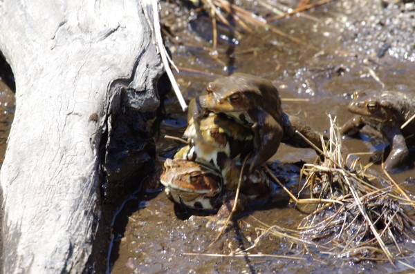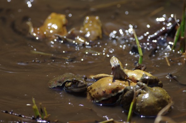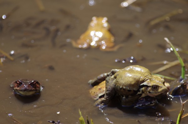 がま合戦 すでにたくさんたまごが にぃ~!! ずっと見てみたかったがま合戦。 ここ、光徳沼でがま合戦があることを知ったのは、橋の欄干と沼に立ってる説明書き。 すでにたまごもたくさん産みつけられてて終盤だったみたいだが観察することができました。 あたりではくわっくわっとカエルの声。 さんっ!!! しー!!!! とりゃ~