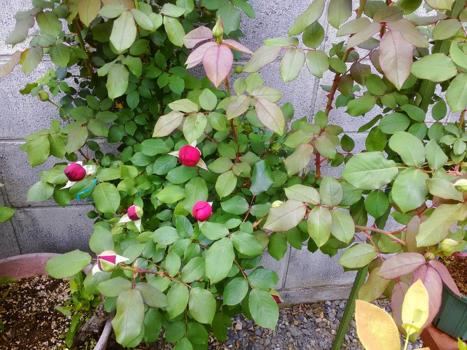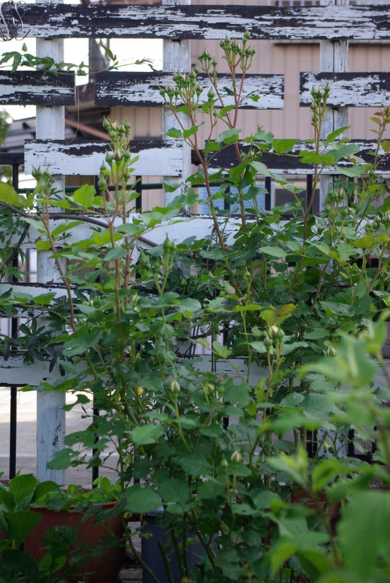 アブラムシの被害は今のところゼロ。虫食いもほんの少々。早く花が見てみたいよー