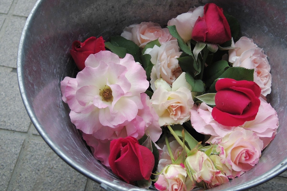 バケツに入れたのはまだ飾れそうな花。