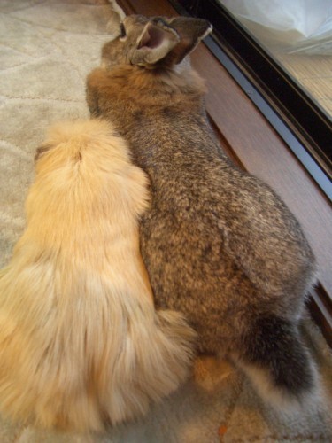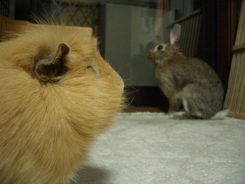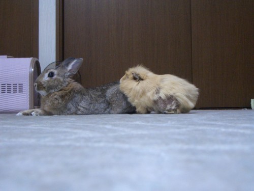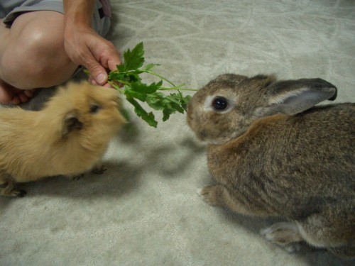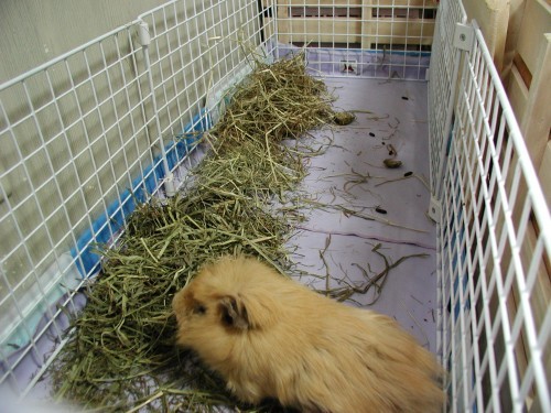 ●2005.09.05 もーちゃんの牧草は3種盛り。お好みのものをどうぞ。 ペットシーツの上にさらさらシート(シーツ?)を敷いています。表面はさらさらでおしっこは下のペットシートに滲みこみます。 ペットシーツを齧ってしまうので。もっと早くこの商品に出会っていればよかったのにな。