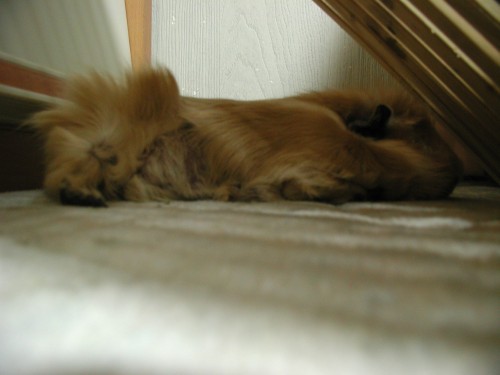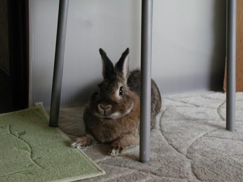 ちーも隠れるのが好き。椅子の下に隠れているようです。