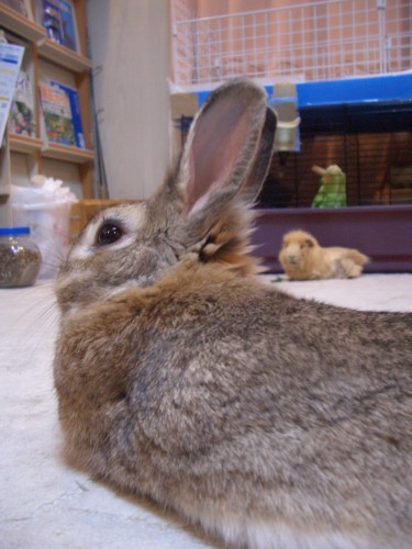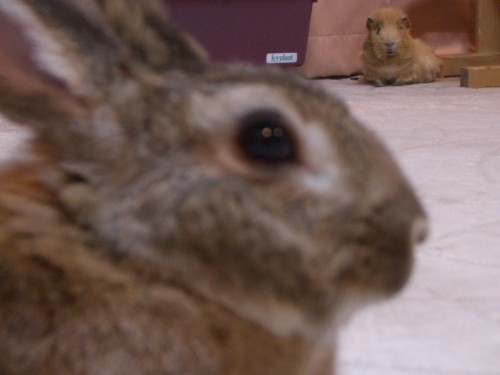 ちーを見つめる遠くのもーちゃん