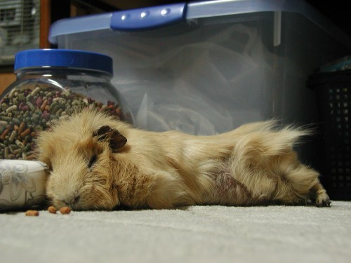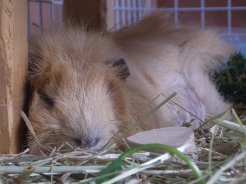 もーちゃん踏み台に寄りかかってすやすや・・・