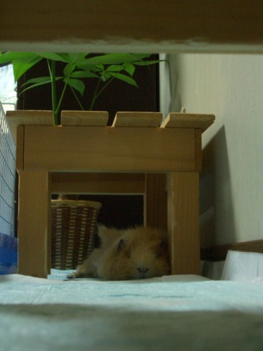手術後、もーちゃんのおうちが変わりました。それまではラビットケージでしたが、お手製のものを作成。