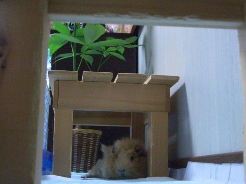 もーちゃんは「何かの下」が好きなようです。隠れてるつもりなのでしょうね。