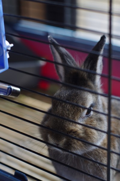 そんなこともあり、部屋を離れる際にはケージでくつろいでもらう事にしました。