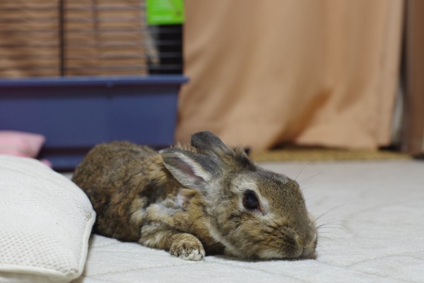 地震の際にもちーはひとり部屋の中でケージから出ていた。