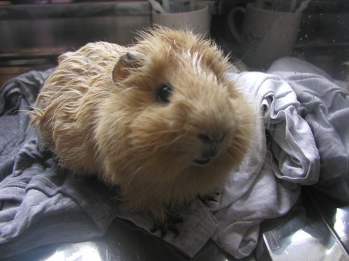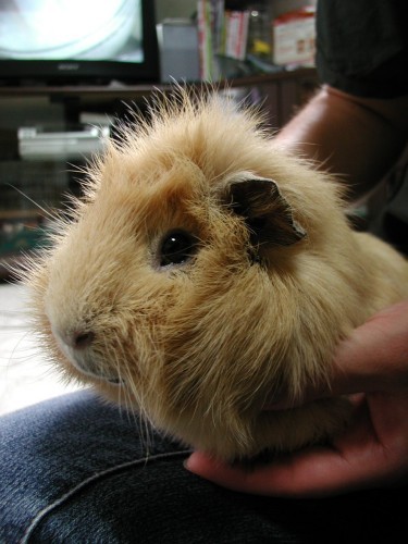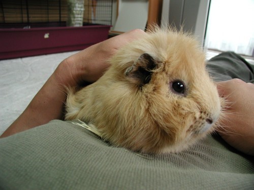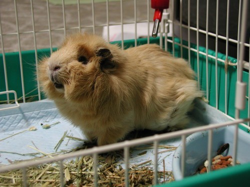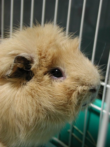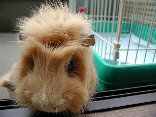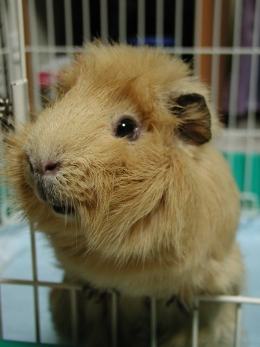 お得意のおねだりポーズ。ケージから身を乗り出してふぃふぃ〜