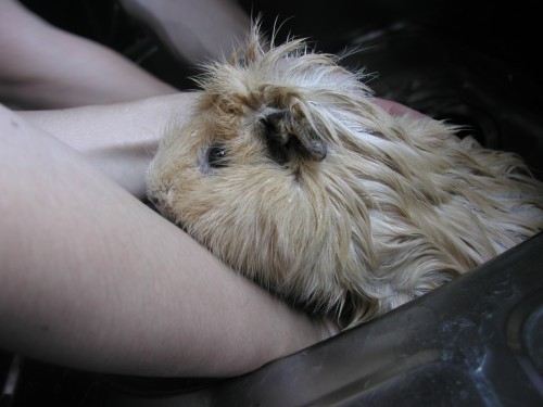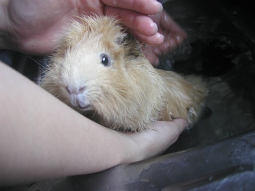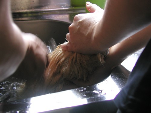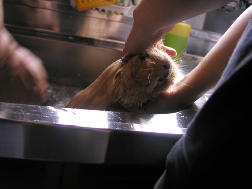 私は体を支える係で夫がお湯を掛ける係